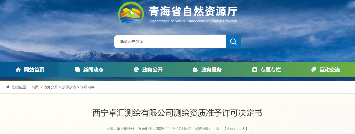 西宁卓汇测绘有限公司测绘资质准予许可决定书